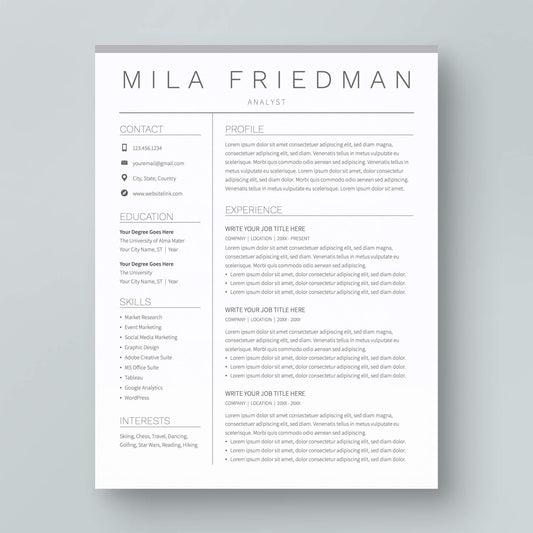 Resume Template: Mila Friedman
