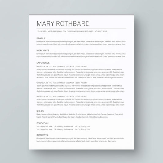 ATS-friendly Resume Template: Mary Rothbard