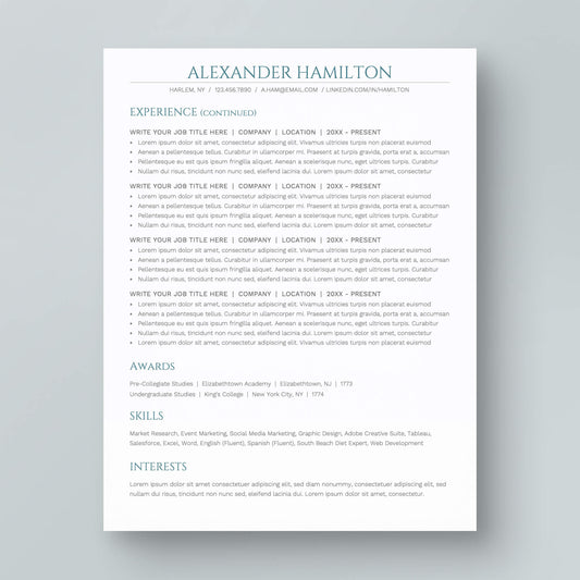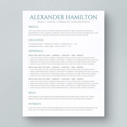 Resume Template: Alexander Hamilton Lite
