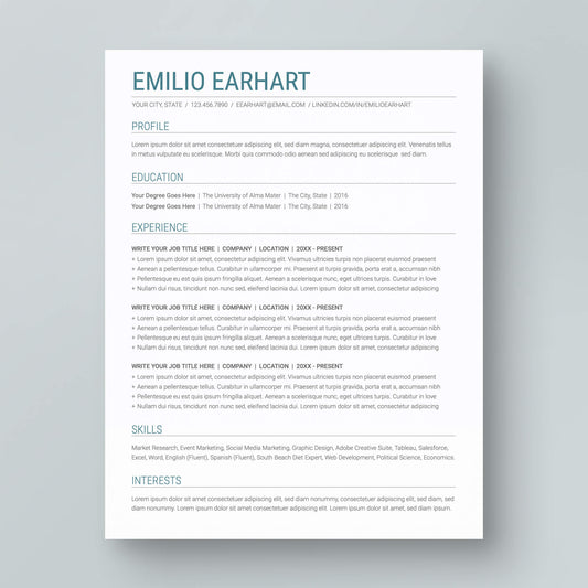 ATS-friendly Resume Template: Emilio Earhart