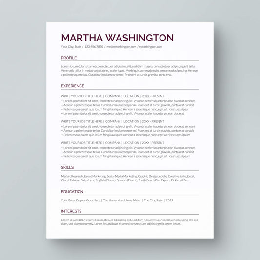 ATS-friendly Resume Template: Martha Washington